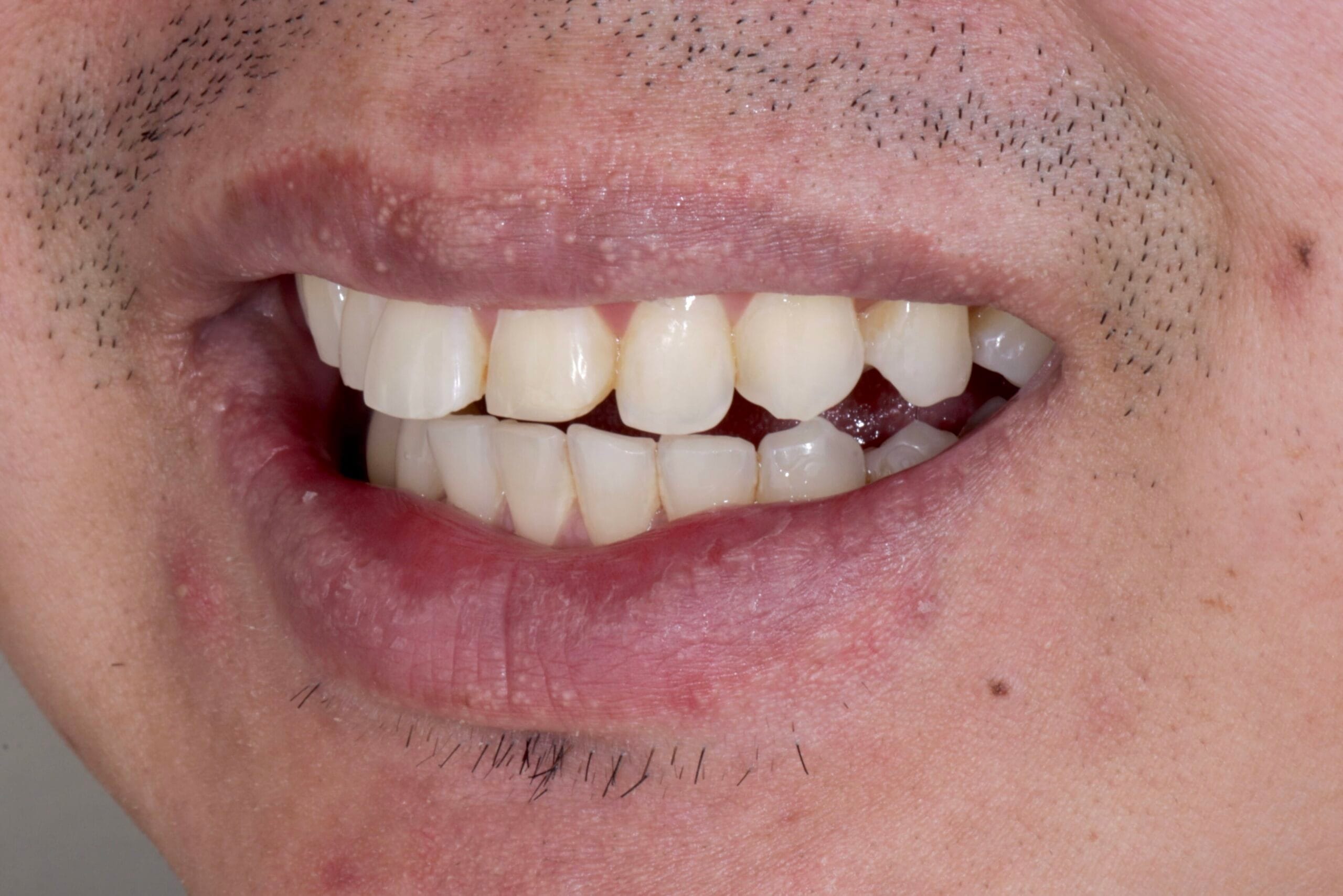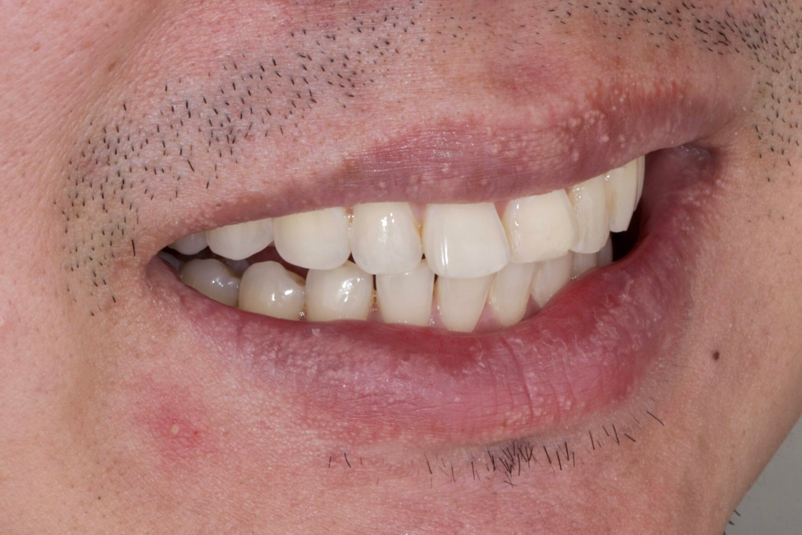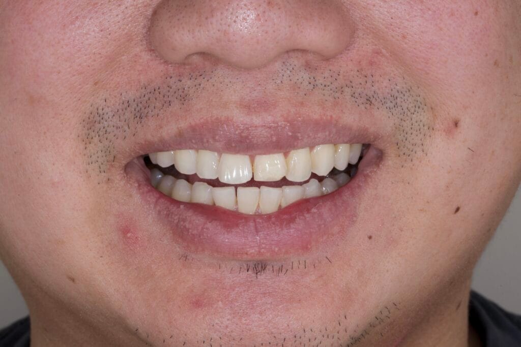 - Altered Smile Arc: The protrusion of the central incisor disrupted the natural curve of the lower lip.